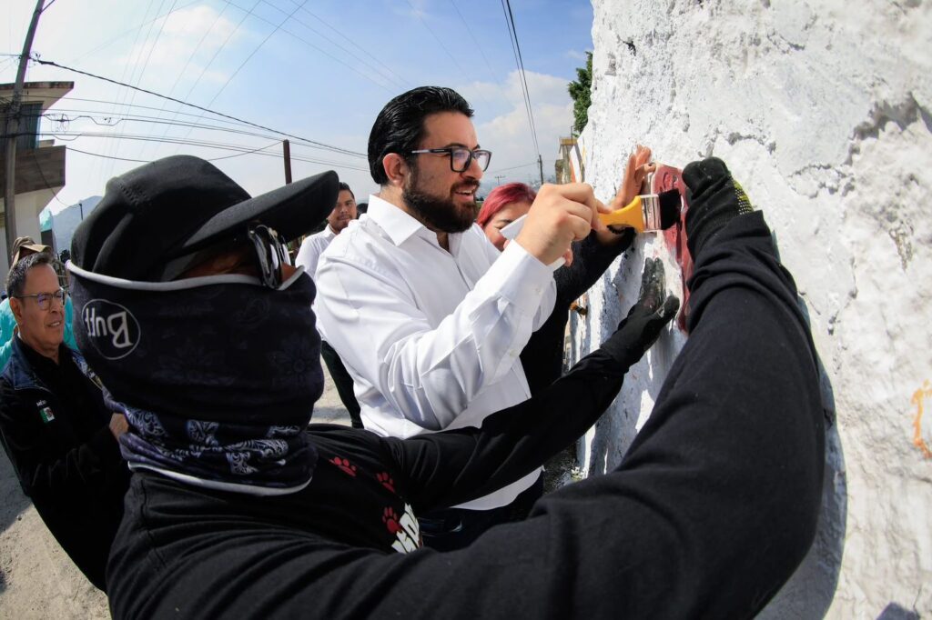 NAUCALPAN, MÉX.— El alcalde Isaac Montoya Márquez encabezó en la colonia La Presa una nueva edición de la Mesa de Paz y la Jornada “Murales y Grafitis por la Paz”, iniciativa con la que el Gobierno Municipal busca fortalecer la seguridad, fomentar la convivencia comunitaria y reconstruir el tejido social a través del arte y la participación ciudadana.